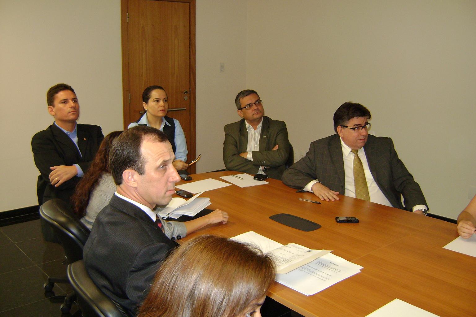Para discutir as causas que estão impedindo o regular andamento dos inquéritos policiais, o Ministério Público Estadual (MPE), por meio da Central de Inquéritos, promoveu, na última sexta-feira (04.11), uma reunião com o secretário de Estado de Justiça e Segurança Pública, Diógenes Curado e representantes da Polícia Judiciária Civil. A reunião foi coordenada pelos promotores Reinaldo Rodrigues de Oliveira Filho, Fânia Helena Oliveira de Amorim e Márcia Borges Campos Furlan. Até o final deste mês, será agendada uma reunião com o governador do Estado, Silval Barbosa, para discutir os problemas funcionais e estruturais da Polícia Civil.