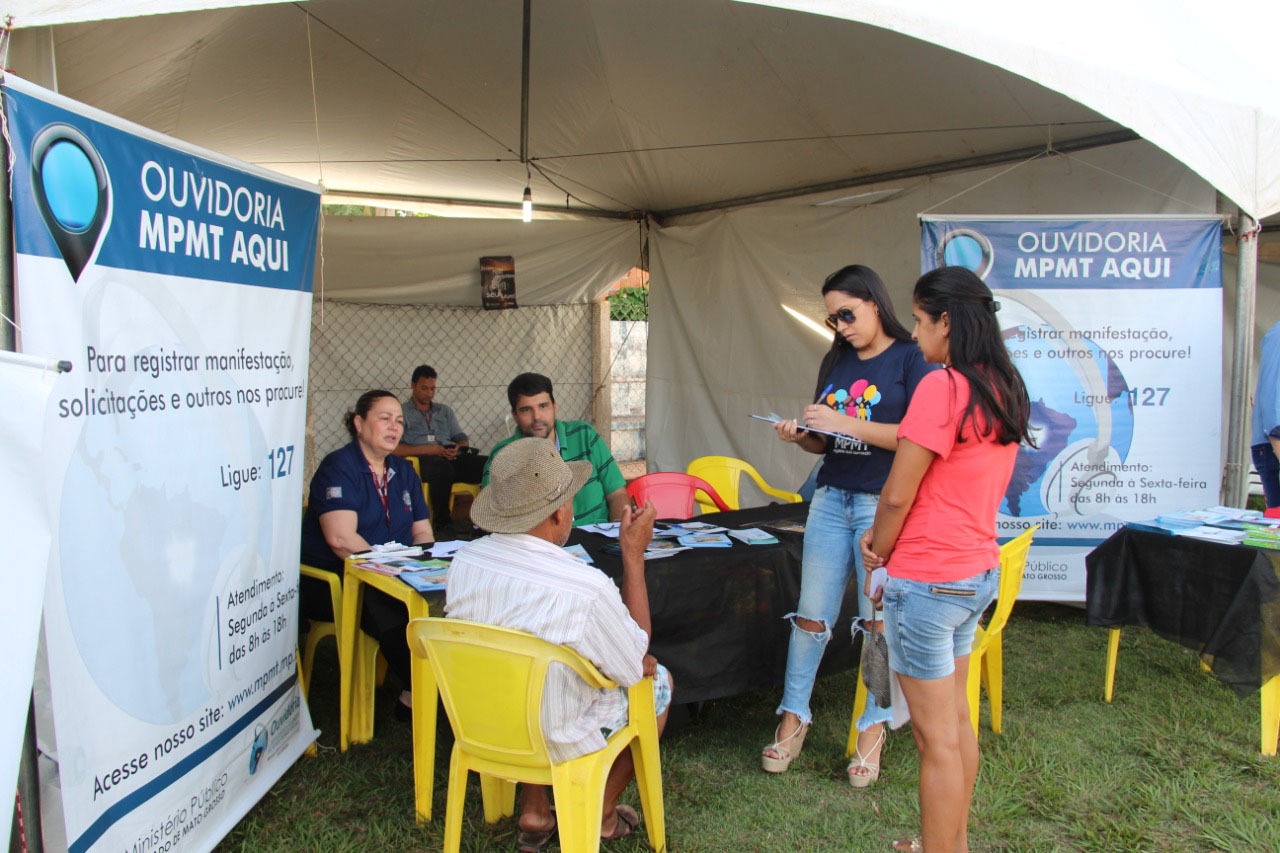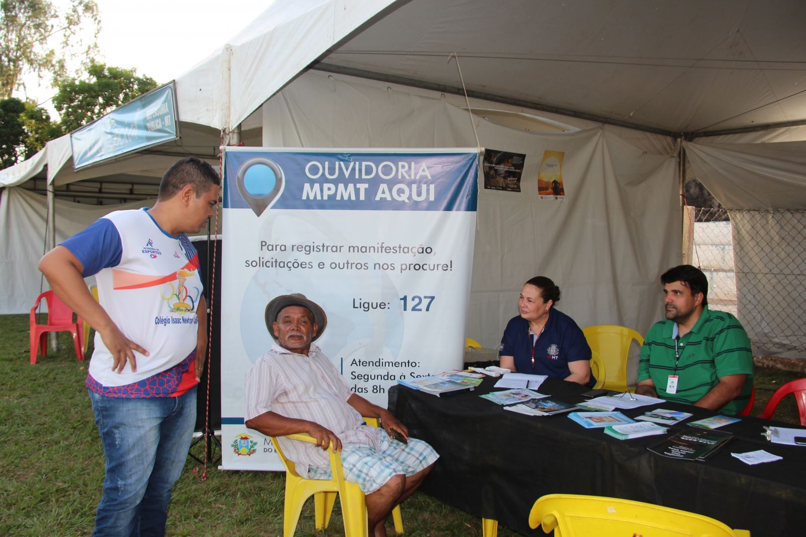 Presidente do Jardim Vitória há mais de nove anos, Benedito Arcanjo de Faria foi o primeiro a visitar o estande do MPMT no evento. Além de se inteirar do que já está sendo feito, apresentou a visão do que pode ser melhorado. “O asfalto, por exemplo, é um problema, e o poder público não termina. Outra coisa precária é o lazer. Temos esse miniestádio que precisa de iluminação, já temos um pedido e nada. Se iluminar, vai ficar bom. Mas não podemos reclamar, porque aos poucos estamos melhorando. Tínhamos problema com água e hoje temos 90% de água boa, de uns três meses para cá também melhorou a saúde. Já a educação é boa, temo escolas em todo canto do bairro”, argumentou.