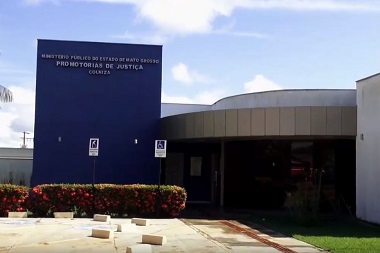 A publicação utiliza-se de uma imagem da fachada da Sede das Promotorias de Colniza, com destaque para o paredão azul que traz a identificação do espaço com as letras em aço escovado. Do lado direito, a porta de entrada, pegando uma parte da imagem do estacionamento para portadores de necessidades especiais.