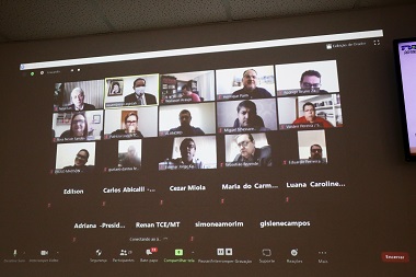 Descrição da Imagem #PraCegoVer - Foto da tela da videoconferência em que aparecem os participantes do seminário promovido pela Assembleia Legislativa do Estado de Mato Grosso. Na fotografia há 15 imagens verticais e horizontais, com os respectivos nomes, entre eles dos promotores de Justiça Miguel Slhessarenko Junior e Gustavo Dantas Ferraz.