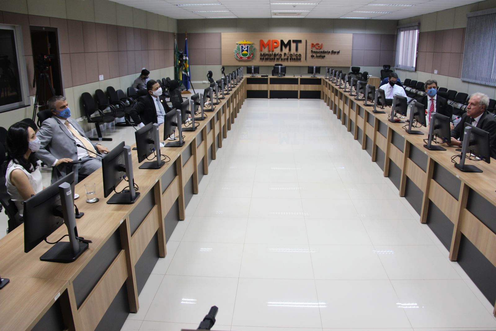 Práticas de enfrentamento à corrupção em Mato Grosso foram apresentadas na tarde desta quinta-feira (10), durante a reunião institucional entre Ministério Público do Estado (MPMT) e Conselho Nacional do Ministério Público (CNMP). Os resultados de iniciativas desenvolvidas a partir da pandemia do Novo Coronavírus, de ferramentas tecnológicas criadas e de um projeto já consolidado que trabalha a prevenção primária à corrupção foram elogiados pelo conselheiro do CNMP Silvio Roberto Oliveira de Amorim Junior. “Quero agradecer pelo dia de hoje e dizer que tenho uma renovação contínua ao participar de momentos como esse, de compartir o que fazemos de positivo no Ministério Público”, afirmou.