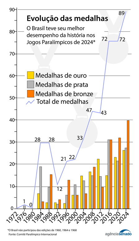 Entre 28 de agosto e 8 de setembro, Paris recebeu paratletas de todo o mundo para os XVII Jogos Paralímpicos. A delegação brasileira fez história nos Jogos, com o melhor desempenho em uma edição das Paralimpíadas que participou. Com o quinto lugar no quadro geral de medalhas, o país somou 89 medalhas distribuídas entre 25 ouros, 26 pratas e 38 bronzes.