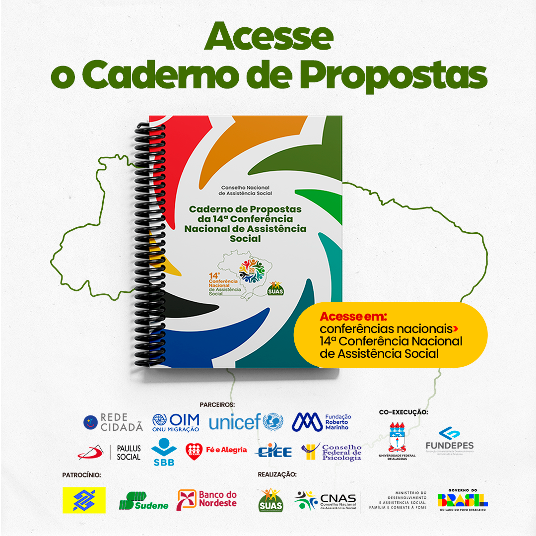 O Caderno de Propostas da 14ª Conferência Nacional de Assistência Social já está disponível para consulta pública. O documento reúne as 63 propostas consolidadas a partir das deliberações das 5.495 conferências municipais, das 27 conferências estaduais e do Distrito Federal, além das 16 Conferências Livres Nacionais, compondo um amplo processo participativo em todo o país.