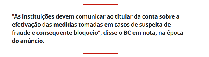Após a marcação por parte das instituições financeiras, não é possível iniciar nem receber transações por meio de contas desse usuário.