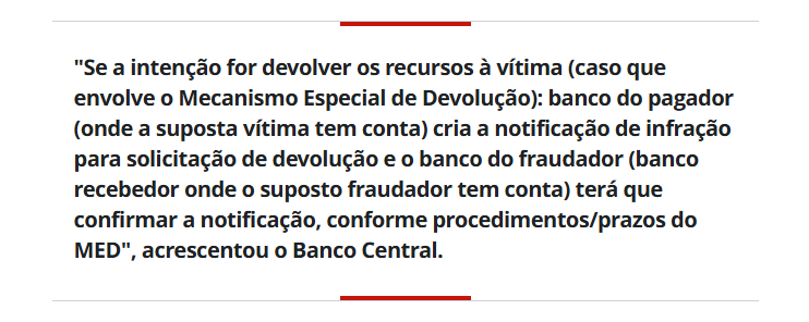 - Se o PIX foi rejeitado pelo banco do recebedor (ou seja, o PIX nem foi concluído): o banco recebedor (onde o suposto fraudador tem conta) pode criar a marcação e não é necessário que o banco do pagador aceite a notificação,