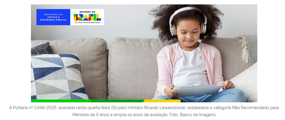 O Ministério da Justiça e Segurança Pública (MJSP), por meio da Secretaria Nacional de Direitos Digitais (Sedigi), atualizou as regras da Classificação Indicativa no Brasil, incorporando critérios voltados ao ambiente digital e criando uma nova faixa etária de proteção para a primeira infância.