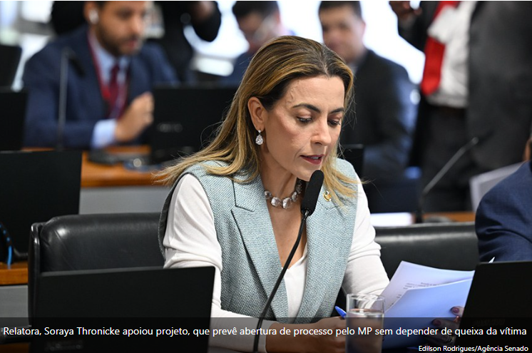 A proposta, de autoria do senador Zequinha Marinho (Podemos-PA), altera o Código Penal para estabelecer que esses casos terão ação penal pública incondicionada (que independem da vontade da vítima), como já ocorre em outros tipos de violência doméstica. A matéria, relatada pela senadora Soraya Thronicke (Podemos-MS), segue para análise da Câmara dos Deputados.