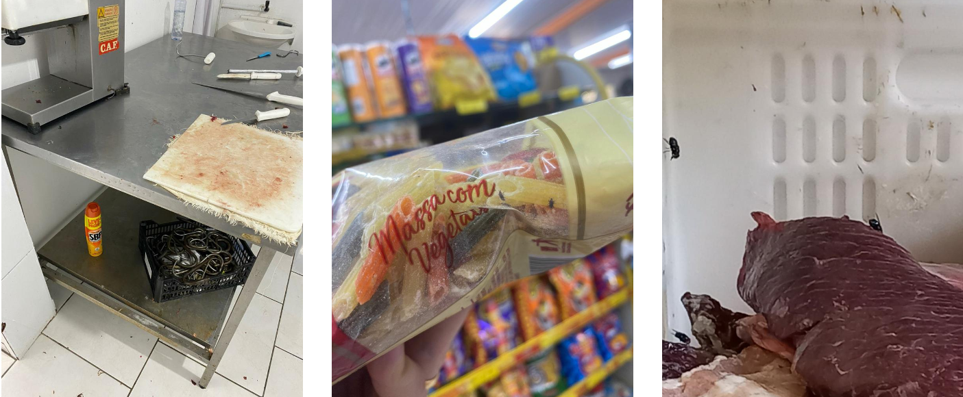 Conforme os autos expedidos durante a fiscalização, uma grande quantidade de carne apresentou problemas, como falta de procedência, problemas de temperatura e estragadas, além de alimentos com a validade vencida, armazenados de forma inadequada e com presença de mofo. Alguns produtos como soda cáustica e raticida, que possuem venda proibida em mercados, foram apreendidos de forma cautelar.
