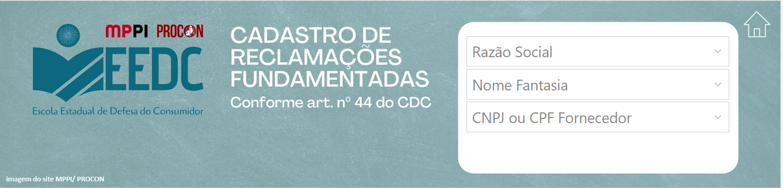 Acesse – Cadastro Estadual de Reclamações Fundamentadas: A parceria entre o Ministério Público do Estado do Piauí (MPPI), Procon Estadual e a Escola Estadual do Consumidor (EEDC) , desenvolveram um cadastro de reclamações fundamentadas sedimentadas pelo artigo 44 do Código de Defesa do Consumidor, podendo ser acessado no link a seguir: https://app.powerbi.com/view?r=eyJrIjoiM2Q0N2E4NzYtYjI1OS00M2VjLWE5OTMtOTg5N2E5MTRmZjE2IiwidCI6Ijc0MDE0NTA1LTY5ZDgtNGRlYi1iY mM3LWE2MTU3MjY0Zjk0MSJ9