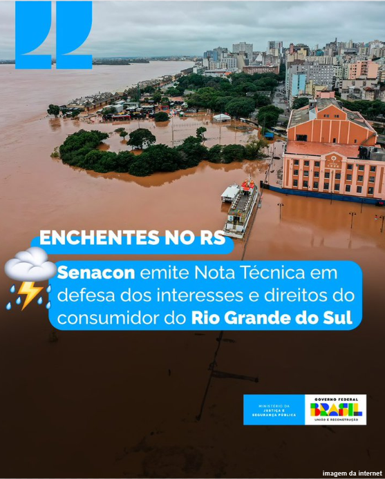 A secretaria Nacional do Consumidor (Senacon), do Ministério da Justiça e Segurança Pública (MJSP), emitiu uma Nota Técnica para defender os interesses e direitos do consumidor do Rio Grande do Sul. O documento, com base no Código de Defesa do Consumidor, pretende evitar que preços abusivos sejam praticados por comerciantes na venda de itens de primeira necessidade, como água e alimentos. A Nota Técnica é dirigida especialmente aos órgãos da Administração Pública Federal, Estadual e Municipal.