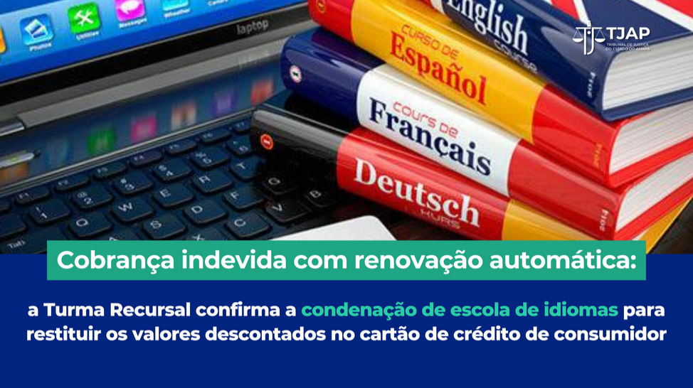 TJAP: A Turma Recursal do Amapá mantém a condenação de escola de idiomas para restituir os valores descontados no cartão de crédito de consumidor por cobrança indevida com renovação automática
