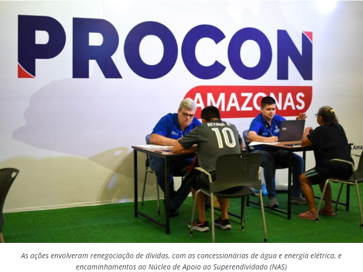 Durante o 1º Feirão Amazonas Meu Lar, realizado neste fim de semana (16 e 17/11) em Manaus, o Instituto de Defesa do Consumidor (Procon-AM) registrou mais de 400 atendimentos aos consumidores. As ações envolveram, principalmente, renegociação de dívidas com as concessionárias de água e energia elétrica, além de orientações e encaminhamentos para o Núcleo de Apoio ao Superendividado (NAS).