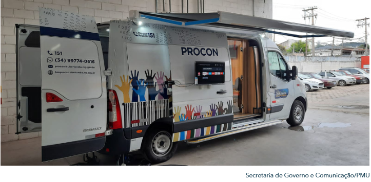 Nos atendimentos realizados pela van da Superintendência de Proteção e Defesa do Consumidor (Procon) de Uberlândia, também é possível conhecer o aplicativo Fale Procon. Por ele, os consumidores podem registrar denúncias e reclamações sobre relações de consumo.
