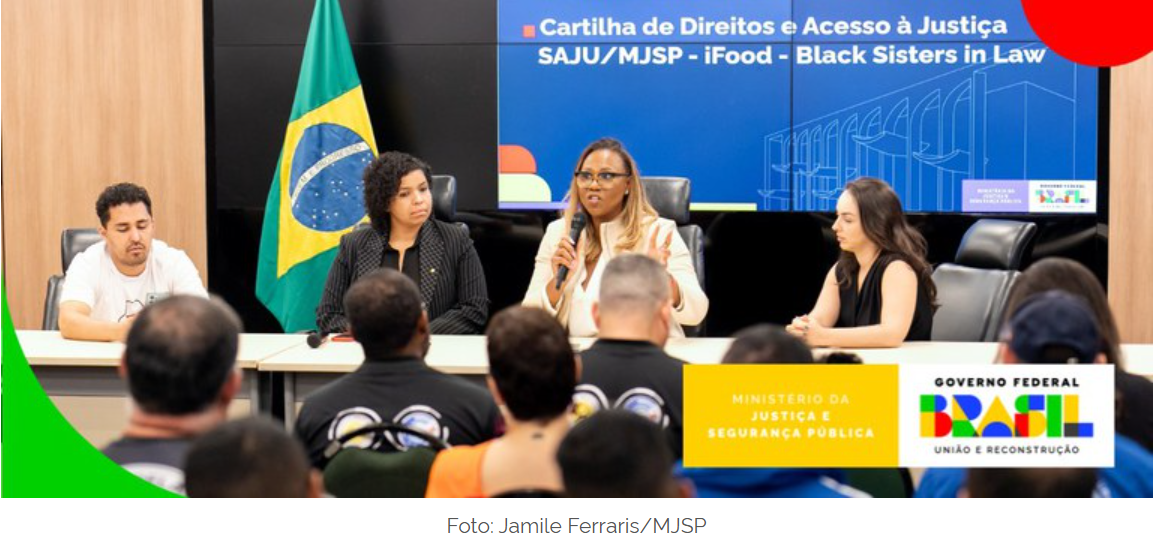 O Ministério da Justiça e Segurança Pública (MJSP), o Ifood e a organização global de advogadas negras Black Sisters in Law lançaram, nesta sexta-feira (6), a Cartilha de Direitos e Acesso à Justiça para entregadores, clientes e estabelecimentos.