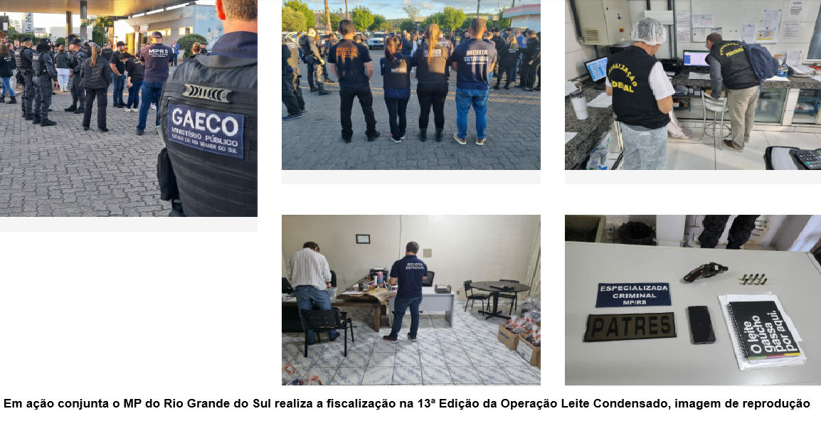 ► Operação Leite Compensado 12: Em março de 2017 – Houve cinco prisões e quatro mandados de busca cumpridos em três laticínios. A operação ocorreu em Nova Araçá, na Serra, Casca e Marau, no Norte, Estrela e Travesseiro, no Vale do Taquari. O MPRS divulgou áudios em que integrantes da cadeia leiteira debochavam ao falar que “o leite só poderiam ter como destino a alimentação de animais”.