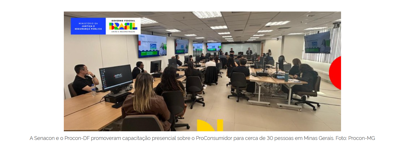 Cerca de 30 profissionais do Instituto de Defesa do Consumidor de Minas Gerais (Procon-MG) participaram de capacitação presencial sobre o ProConsumidor. O encontro, promovido em parceria com a Secretaria Nacional do Consumidor (Senacon), ocorreu de 12 a 14 de agosto, na sede do Procon-MG, em Belo Horizonte.