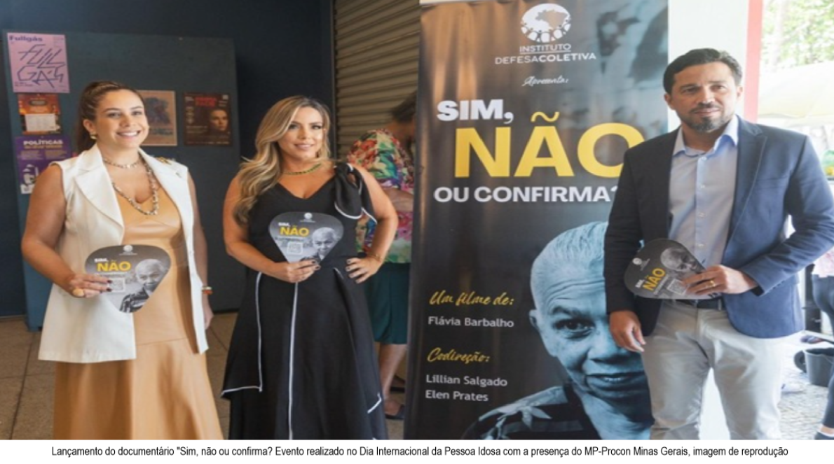 O Procon-MPMG, órgão do Ministério Público de Minas Gerais, participou do lançamento do documentário “Sim, não ou confirma?”, produzido pelo Instituto Defesa Coletiva (IDC). O evento ocorreu nessa quarta-feira, 1º de outubro, no Cine Santa Tereza, em Belo Horizonte, com a data simbolicamente escolhida por marcar o Dia Internacional da Pessoa Idosa.