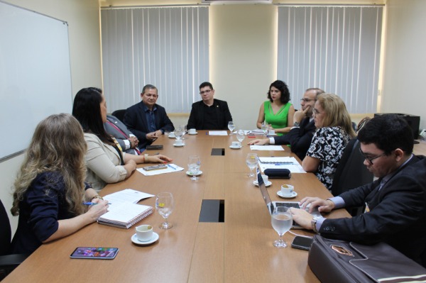 Presentes o procurador-geral e subprocurador-geral adjunto da Procuradoria-Geral do Estado (PGE), Thiago Albuquerque e Alexandre Sampaio, respectivamente; a secretária interina da Sesa, Nair Mota Dias; o secretário-adjunto da Secretaria de Governo e Gestão Estratégica, Maurício Alencar; a presidente e a assessora jurídica da Fundesa, Gisela Cezimbra e Kátia Melo, respectivamente.