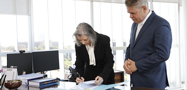 Na abertura da sessão plenária desta quinta-feira (12), a presidente do Tribunal Superior Eleitoral (TSE), ministra Cármen Lúcia, informou sobre a assinatura de acordo de cooperação técnica entre o Tribunal e o Ministério Público do Trabalho (MPT) para o combate ao assédio eleitoral no trabalho nas Eleições Municipais de 2024. O documento foi assinado pela presidente do Tribunal e pelo procurador-geral do Trabalho, José de Lima Ramos Pereira, no gabinete da Presidência do TSE na manhã de hoje.
