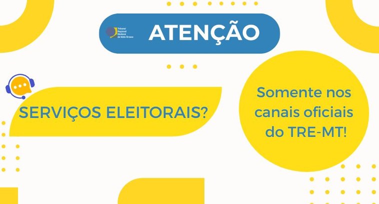 O TRE-MT reforça a orientação à população, para que tome os cuidados com possíveis golpes, uma vez que os serviços eleitorais só estão disponíveis no site oficial do TRE-MT,www.tre-mt.jus.br, e pelo e-Título, disponível nas plataformas iOS e Android. Além disso, ressalta que todos os serviços eleitorais são gratuitos e devem ser realizados exclusivamente pelos canais oficiais da Justiça Eleitoral. No caso da emissão de guias para pagamentos de multes, o serviço também deve ser solicitado pelos canais oficiais do TRE-MT.