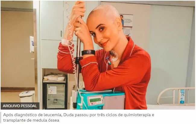 Inicialmente, Duda foi submetida a três ciclos de quimioterapia, mas devido à gravidade da doença, leucemia mieloide aguda, os médicos disseram que era necessário um transplante de medula óssea.