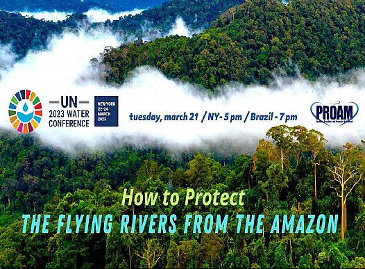 O evento How to protect the Flying Rivers from Amazon faz parte da programação oficial da UNITED NATIONS 2023 WATER CONFERENCE e será transmitido online no dia 21 de março, terça feira, às 19:00 (hora do Brasil) ou 5 pm (horário de Nova York) com duração prevista de 90 minutos. O evento ficará disponibilizado no YouTube do PROAM com tradução simultânea para a língua inglesa.