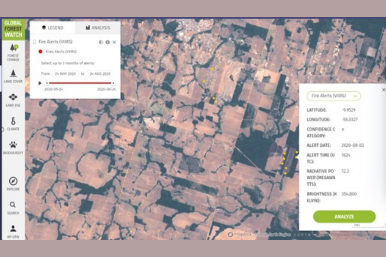 A TECNOLOGIA: Coordenada pelo World Resources Institute (WRI), a Global Forest Watch é uma plataforma online gratuita de monitoramento e fornecimento de alertas de desmatamento e incêndios florestais que une tecnologia de satélite, dados abertos e crowdsourcing com o objetivo de melhorar a gestão das florestas no mundo todo.