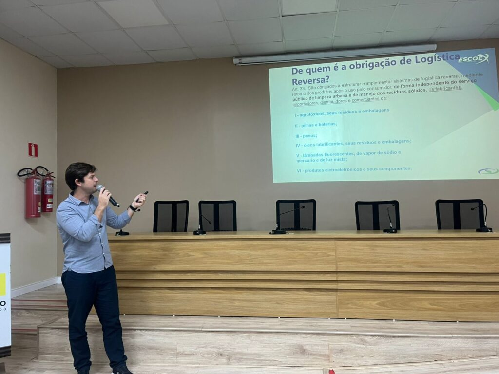 O presidente da ABRAMPA, promotor de justiça Luciano Loubet, ministrou a palestra “Regime Jurídico dos Resíduos Sólidos: da geração à disposição final”, na qual apresentou conceitos-chave, detalhou a Lei Nacional de Resíduos Sólidos e compartilhou exemplos práticos de coleta seletiva, triagem e reciclagem, reforçando a importância do controle social e do comprometimento dos gestores públicos.