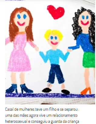 Casal de mulheres teve um filho e se separou; uma das mães agora vive um relacionamento heterossexual e conseguiu a guarda da criança. Ela disputa o filho com a ex, hoje em relação hétero: "Precisa de um pai"...