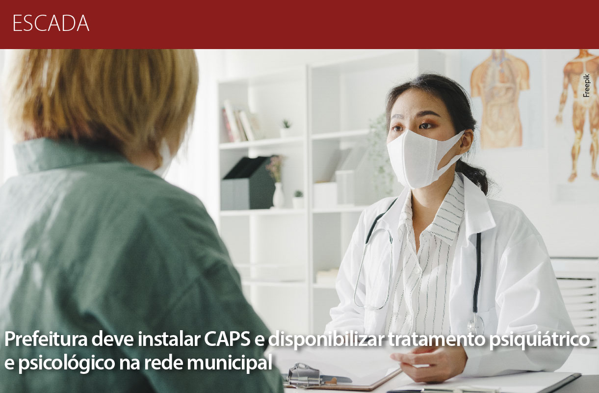 O Ministério Público de Pernambuco (MPPE), por meio da Promotoria de Justiça local, recomendou à Prefeitura de Escada, através das Secretarias Municipais de Saúde e de Ação Social, que instale, no prazo máximo de três meses, um Centro de Atenção Psicossocial (CAPS) e disponibilize, de forma imediata, tratamento psiquiátrico e/ou psicológico na rede municipal, através de profissionais devidamente habilitados, inclusive para atendimento de crianças e adolescentes.