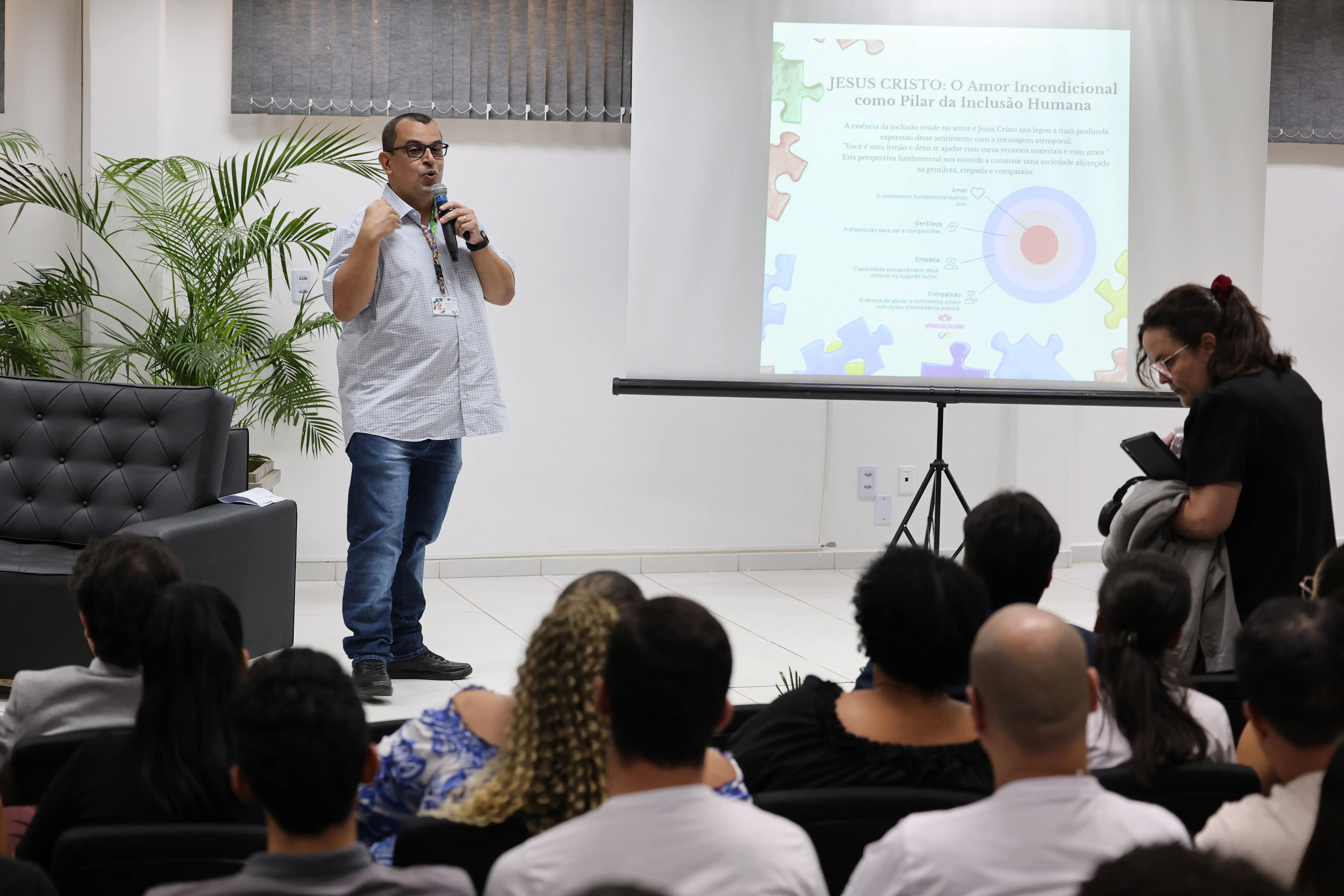 Em um depoimento sincero e cheio de sentimentos, o servidor judiciário Washington Hedder de Vasconcelos compartilhou os desafios enfrentados por famílias atípicas e sua história como pai da adolescente Larissa, de 13 anos, diagnosticada com autismo nível 3 e surdez profunda bilateral. Ele apresentou a palestra “Desmistificando o Autismo: um olhar acolhedor” durante a 4ª edição do projeto “TJMT Inclusivo – Capacitação e Conscientização em Autismo”, realizada no Fórum de Cáceres no dia 26 de setembro.