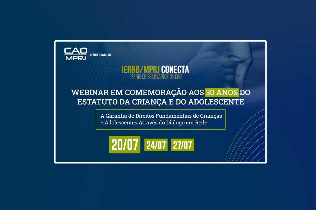 EVENTO MPRJ: dias 24 e 27 de julho o MPRJ realiza primeiro encontro do Webinar em Comemoração aos 30 Anos do Estatuto da Criança e do Adolescente