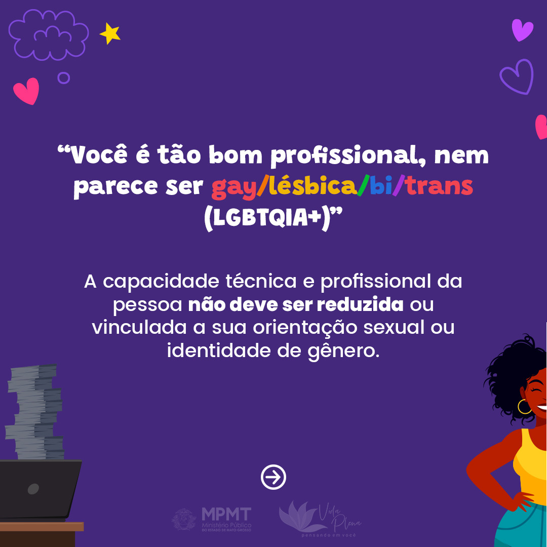⚖️⛱️👬👩🏿‍🤝‍👩🏽👤🗣️🔎🏳️‍🌈🏳️‍⚧️Uma pesquisa internacional realizada em 2016 pelo Center for Talent Innovation demonstra que por receio de represálias, no Brasil 61% das pessoas LGBTQIA+ escondem sua sexualidade ou a orientação de gênero para colegas e gestores no ambiente de trabalho. O levantamento revela que na ausência de políticas institucionais que acolham as pessoas LGBTQIA+, o trabalho pode se tornar um ambiente hostil e propiciar processos de adoecimento.Com o objetivo de promover reflexões sobre a temática, o Núcleo de Qualidade de Vida no Trabalho do Ministério Público do Estado de Mato Grosso lançará a partir desta semana vários posts nas redes sociais sobre respeito à diversidade LGBTQIA+ no ambiente de trabalho. Leia mais no link